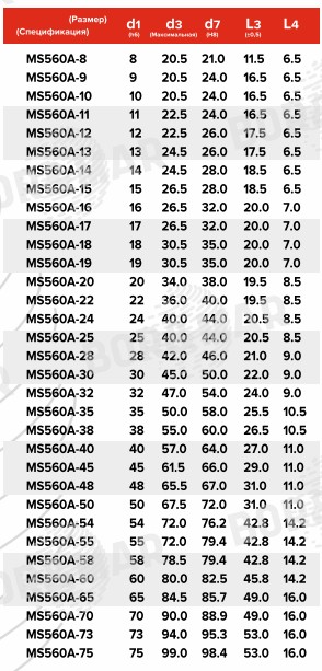 | MS560A I4 | 14 | 24.5 | 28.0 | 18.5 | 6.5 |