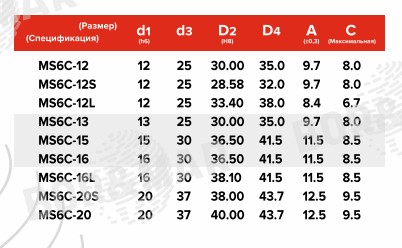 | MS6C-12S | 12 | 25 | 28.58 | 32.0 | 9.7 | 8.0 |