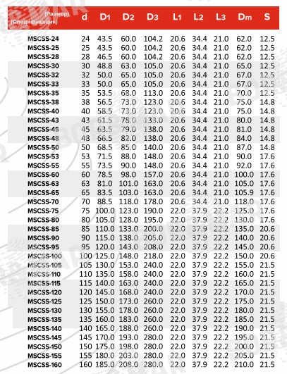 | Размер, спецификация | d, мм | D1, мм | D2, мм | D3, мм | L1, мм | L2, мм | L3, мм | Dm | S |