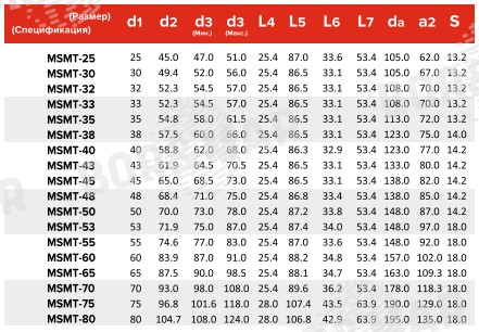 | Размер, спецификация | d1, мм | d2, мм | d3 мин, мм | d3 макс, мм | L4, мм | L5, мм | L6, мм | L7, мм | da | a2 | S |