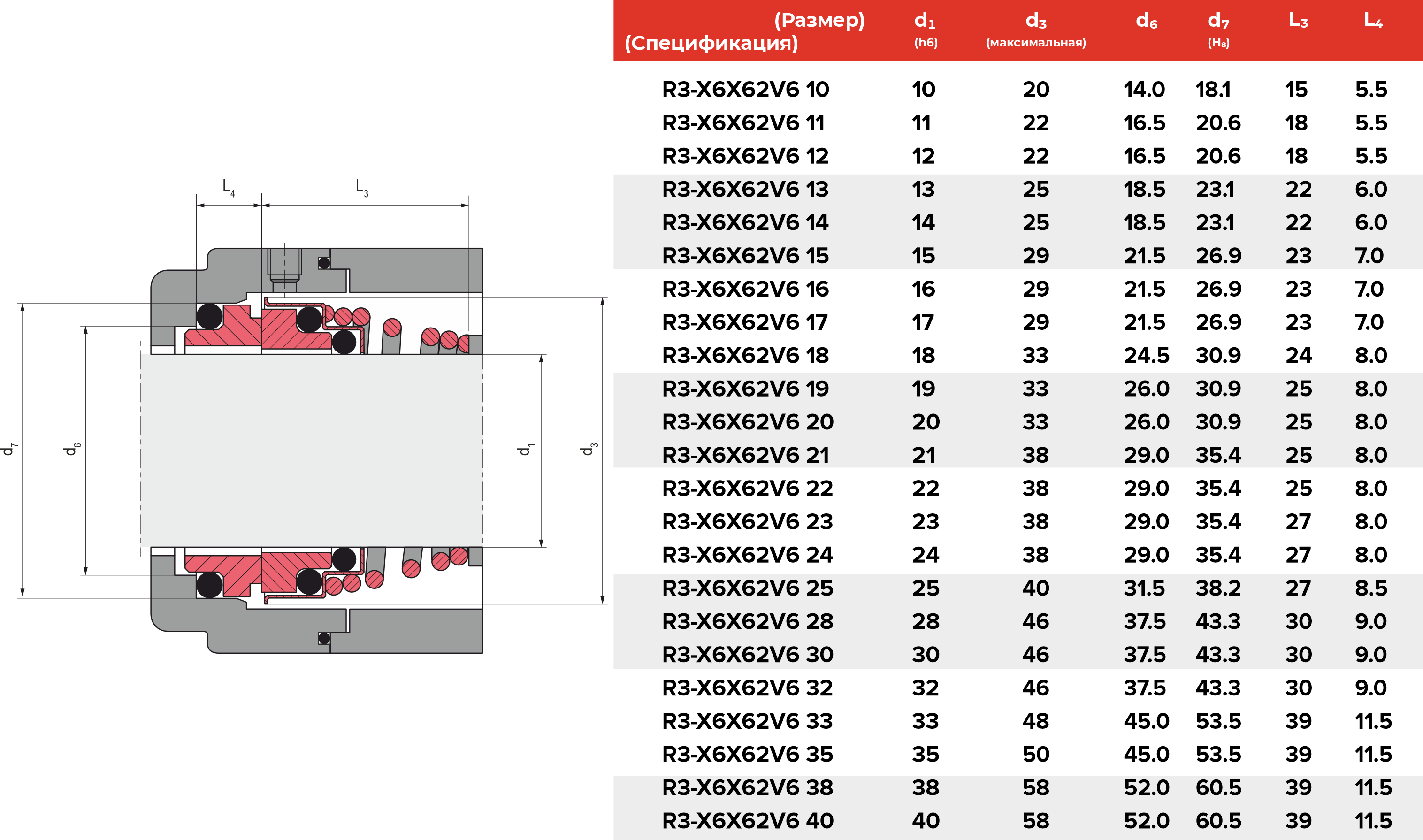 Характеристики торцевого уплотнения R3-X6X62V6 17
